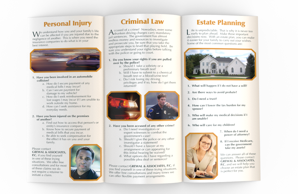 Matte finish has less glare, and has a flatter appearance. It's better for brochures with heavy amounts of text.